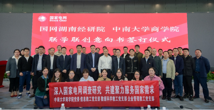 习近平总书记高度重视能源工作,多次作出重要指示批示,科学引领能源发展进入新时代、开创新局面。党的二十大就深入推进能源革命、确保能源安全、推进碳达峰碳中和、规划建设新型能源体系、科技自立自强等作出安排部署,提出新的明确要求。为深入贯彻习近平新时代中国特色社会主义思想和党的二十大精神,更好地服务于国家能源安全重大需求,FUN乐天使官方网站党委书记任胜钢带领信息教工支部、数科教工支部、管理教工支部于2023年4月26日下午前往国家电网湖南省电力有限公司经济技术研究院( 简称“国网湖南经研院”)开展调查研究和支部共建活动。