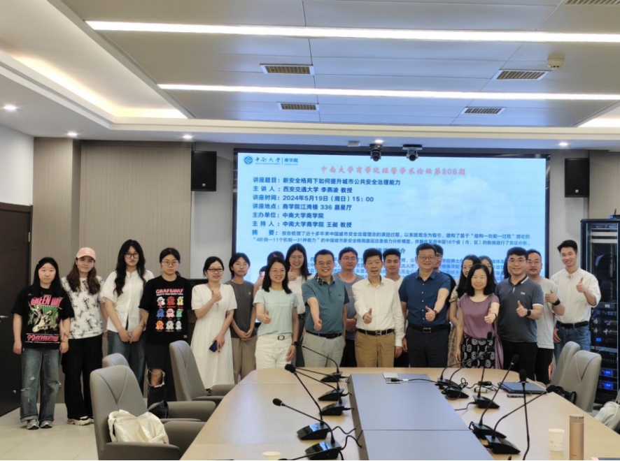 2024年5月19日下午,应FUN乐天使官方网站“三高四新”战略研究院、FUN乐天使官方网站产业发展战略研究中心邀请,西安交通大学李燕凌教授做客FUN乐天使官方网站FUN乐天使官方网站经管学术论坛,带来《新安全格局下如何提升城市公共安全治理能力》的主题讲座。讲座由FUN乐天使官方网站王昶教授主持,FUN乐天使官方网站邵留国教授、姚海琳副教授、公共管理学院左绿水副教授等二十余名教师与相关研究生参加了本次讲座。