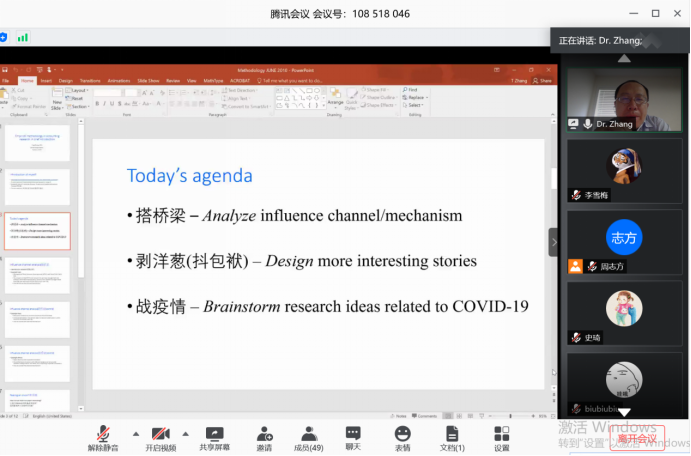 最后是“战疫情”,张教授立足目前新冠疫情对企业发展造成的影响,向在座师生推荐了几个研究的方向,鼓励大家提出对实践有指导意义的对策。