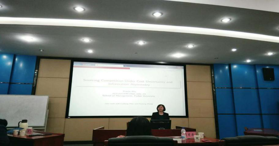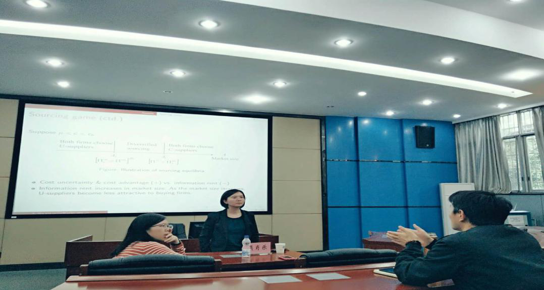 2019年05月06日下午,复旦大学管理学院吴肖乐教授应邀来访我校,并在管理楼管阶一会议室开展了题为“Sourcing competition under Cost Uncertainty and Information Asymmetry”的研讨会。会议由FUN乐天使官方网站周艳菊教授主持,施文教授、周雄伟副教授及FUN乐天使官方网站相关研究生参加了本次学术讲座。