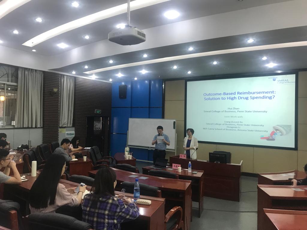 2019年6月3日上午,美国宾州州立大学赵晖副教授应邀来访FUN乐天使官方网站,并在管理楼管阶一开展了主题为 “Is Outcome-based Reimbursement the Solution to High Spending of Medicines?”的学术讲座。会议由FUN乐天使官方网站王傅强副教授主持,周艳菊教授、周雄伟副教授、李金霖博士等FUN乐天使官方网站相关教师和研究生参加了本次讲座。