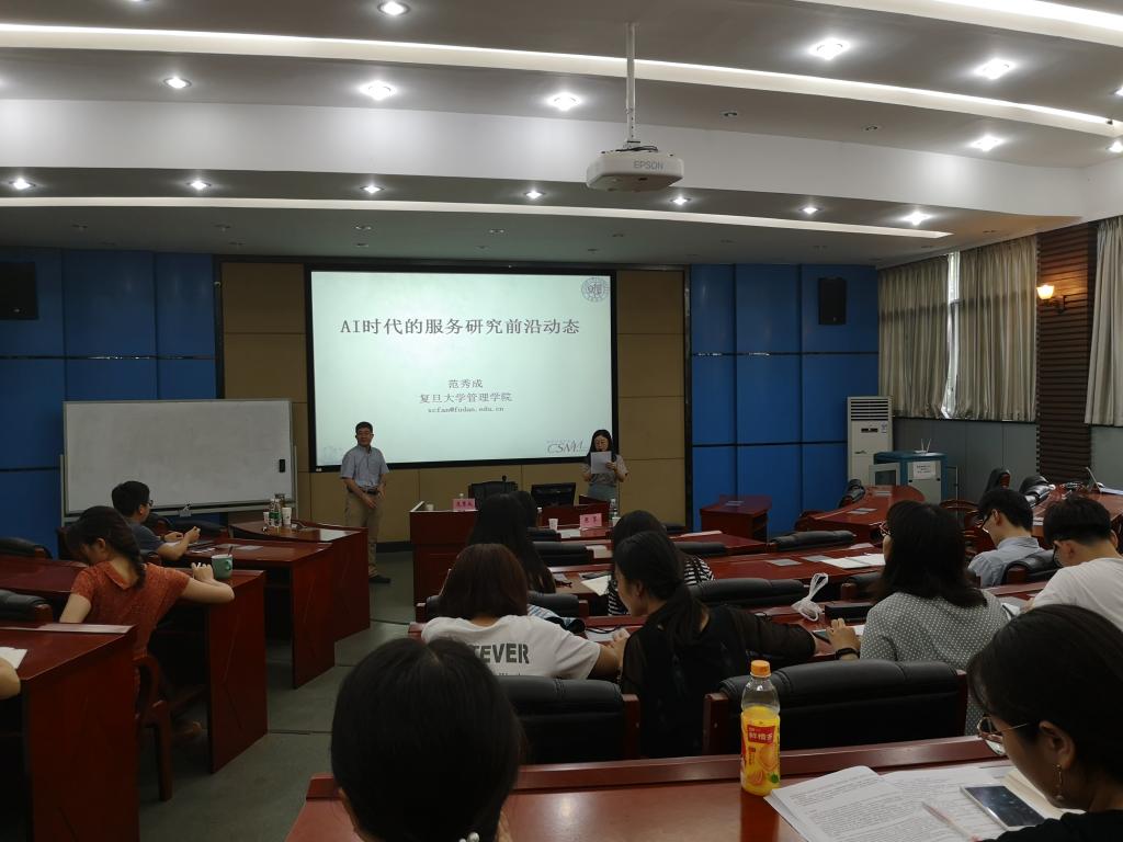 上午10点,范教授在管理楼管阶一开展了主题为“人工智能时代服务营销研究前沿动态”的学术讲座。讲座由张琴副教授主持,乐天使官网院长龚艳萍教授、张运生教授及多位教师及研究生参加了本次讲座。范秀成教授结合人工智能的发展,聚焦服务营销主题,首先以海底捞企业、服务机器人等案例阐述AI技术在服务中扮演的角色以及给企业服务带来的革命。范教授指出服务机器人的不断成熟和AI技术的广泛应用,在全球掀起一场服务革命,彻底颠覆了传统的服务交互模式和服务提供方式,促使学术界要用全新的观点和视角开展服务研究。其次,范教授指明了未来服务研究领域的两个重要趋势:技术创新与成果转化,他认为服务研究需要更多地为消费者着想,关注消费者幸福感和福祉,服务研究的范围应该拓展到医疗卫生服务、养老服务、文化创意等新的领域。最后,范教授将变革性的服务营销与消费者幸福感联系起来,探讨了转型升级背景下技术创新对消费者幸福感形成机理与提升策略的研究课题。讲述之后,范教授针对在座师生提出的疑问进行了详细的解答,现场展开了热烈地讨论。最终,本次讲座在一片热烈的掌声中圆满结束,本次讲座为乐天使官网师生提供了一次重要的学习交流机会,师生们受益匪浅。