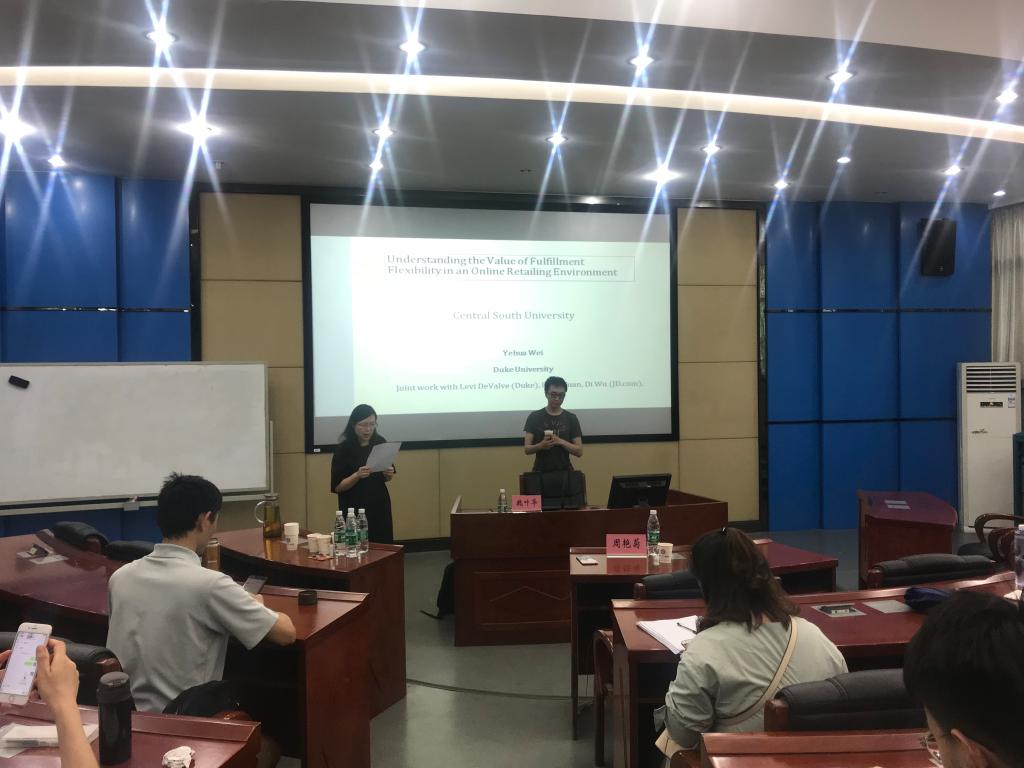 2019年6月26日下午,美国杜克大学魏叶华副教授应邀来访我校,并在管理楼管阶一开展题为“Understanding the Value of Fulfillment Flexibility in an Online Retailing Environment”的讲座。讲座由周艳菊教授主持,周雄伟副教授及FUN乐天使官方网站教师和相关专业学生参加了本次讲座。