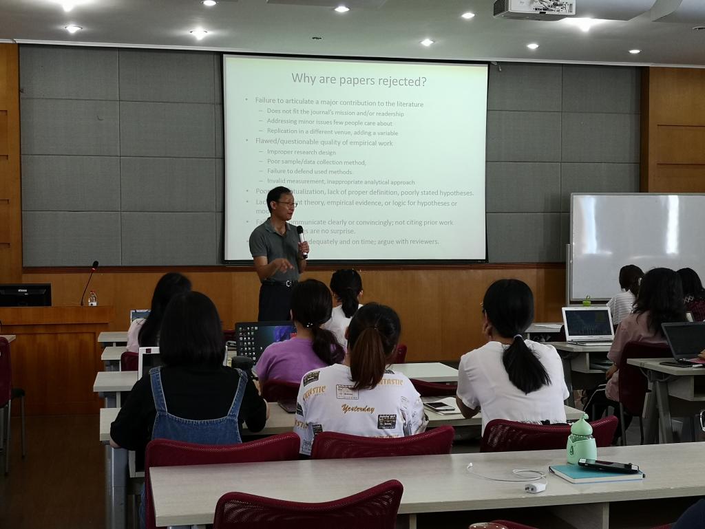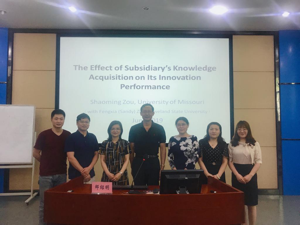 6月26日上午10点,邹绍明教授应邀在管理楼管阶一会议室开展了主题为“The Effect of Subsidiary's Knowledge Acquisition on It's Innovation Performance”的学术讲座。讲座由谢菊兰老师主持,院长龚艳萍教授、副院长刘咏梅教授、副院长关健教授、副院长李大元教授、戴国斌副教授及多位教师和研究生参加。在此次讲座中,邹绍明教授介绍了在国际市场中子公司的知识获取行为将如何影响其创新绩效。该研究的最大亮点在于将子公司进行自主学习获取创新知识储备的动机和行为进行了重新定义,区分探索型导向和开发型导向对子公司自主创新的不同影响。这一创新思维突破了传统的通过探讨边界来解释差异的固有范式,另辟蹊径从概念的重新定义着手,为广大研究生如何进行创新性的研究具有重大启示。最后,邹绍明教授针对在座师生提出的疑问进行了详细的解答,现场展开了热烈地讨论,参与者收获颇多。本次讲座为乐天使官网师生提供了一次重要的学习交流机会,为老师和学生开展具有理论创新的研究提供了新的思路。