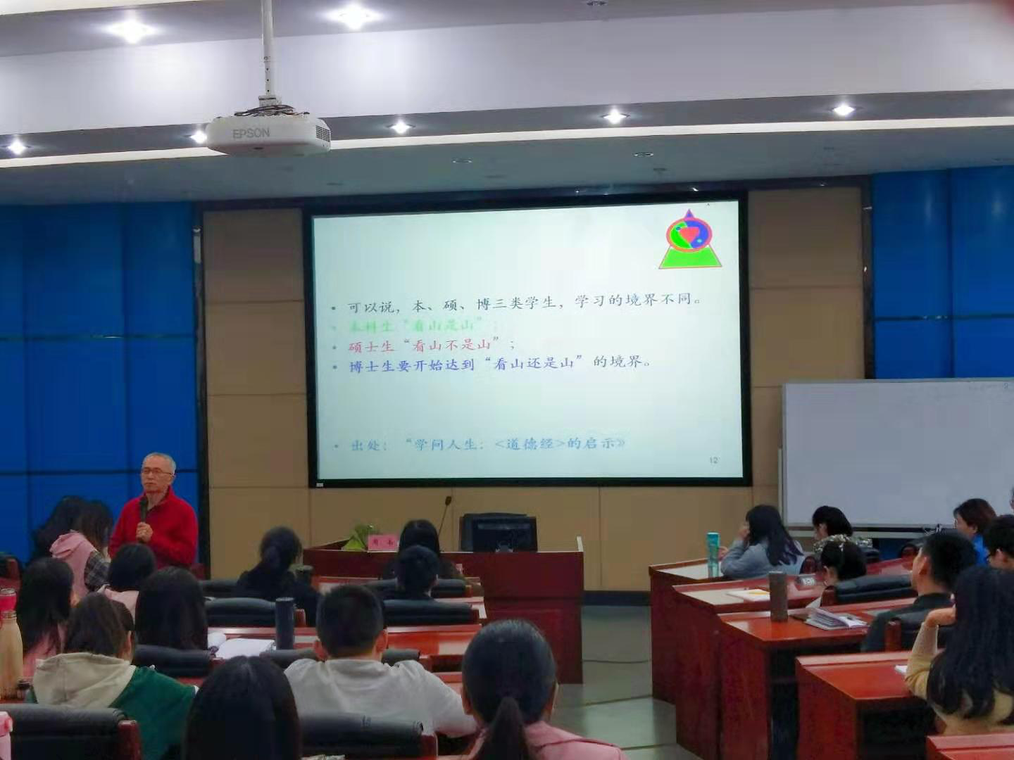 讲座伊始,通过对讲座到场学生的提问,周南教授灵活地引出本次讲座的两个主要问题:学生如何与导师相处以及导师如何指导学生,然后通过对本、硕、博三类学生的深刻理解提出了本科阶段、硕士阶段、博士阶段分别对应着不同的学习境界。其次,周南教授向我们阐述了写论文会遇到的相关问题以及解决办法,指出在写论文的过程中存在着四个阶段,每个阶段存在着对应的问题以及具体的解决办法。周南教授认为学生在与导师的交往以及论文写作过程应该保持“大智若愚”的方式,即大聪明需要下笨功夫,学生读研下“笨功夫”是“硬道理”,即考验学生,也考验导师。讲座接近尾声,周南教授就在场同学提出的关于在论文写作过程中遇到的问题依次给予了深入精准的解答并提出了具有针对性的处理意见,同时向每位提问的学生赠送《学问人生:<道德经>的启示》一书。最后,FUN乐天使官方网站张琴副教授对本次讲座活动做出了总结,讲座在一片热烈的掌声中圆满结束。本次讲座为乐天使官网师生提供了一次重要的学习交流机会,师生们受益匪浅。