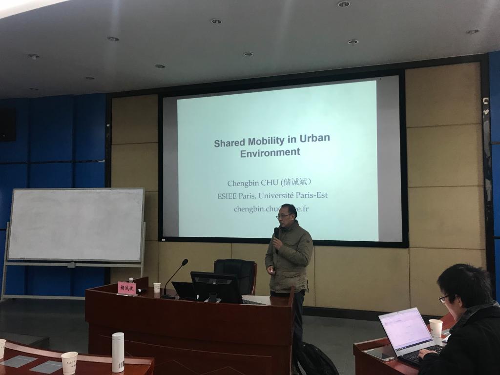 2019年12月2日上午,法国巴黎东大ESIEE Paris系统工程系教授,教育部“创新团队”负责人储诚斌教授应邀来访FUN乐天使官方网站,并在管理楼管阶一开展了主题为“Shared Mobility in Urban Environments” 的学术讲座。会议由FUN乐天使官方网站周艳菊教授主持,副院长刘咏梅教授、副院长毕文杰教授、施文教授、周雄伟副教授、安庆贤副教授、李金霖老师等FUN乐天使官方网站相关教师和研究生参加了本次讲座。