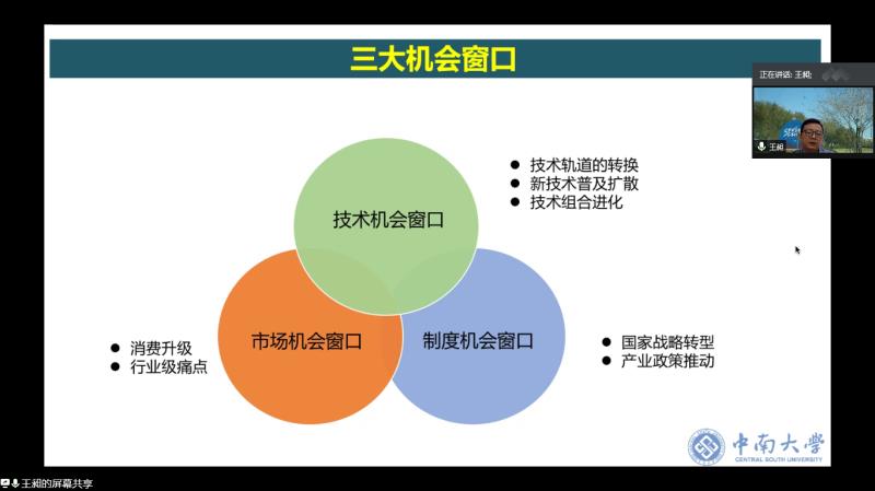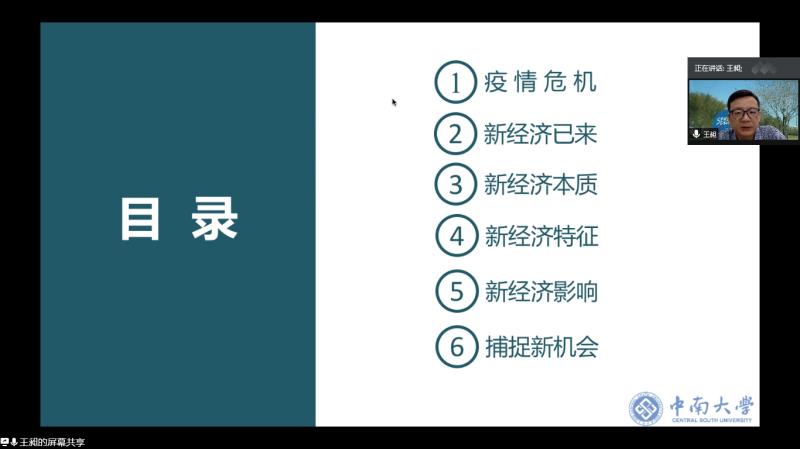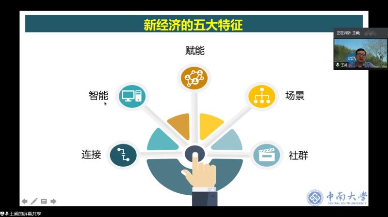 6月5日上午,王昶教授针对当前疫情对社会经济的影响,提出新经济是企业家重振出发的重要突破口。讲座从机会窗口视角阐述了新经济发展的基础条件,描述了新经济的本质特征和影响效应,并结合典型案例讲解企业家如何拥抱新经济。