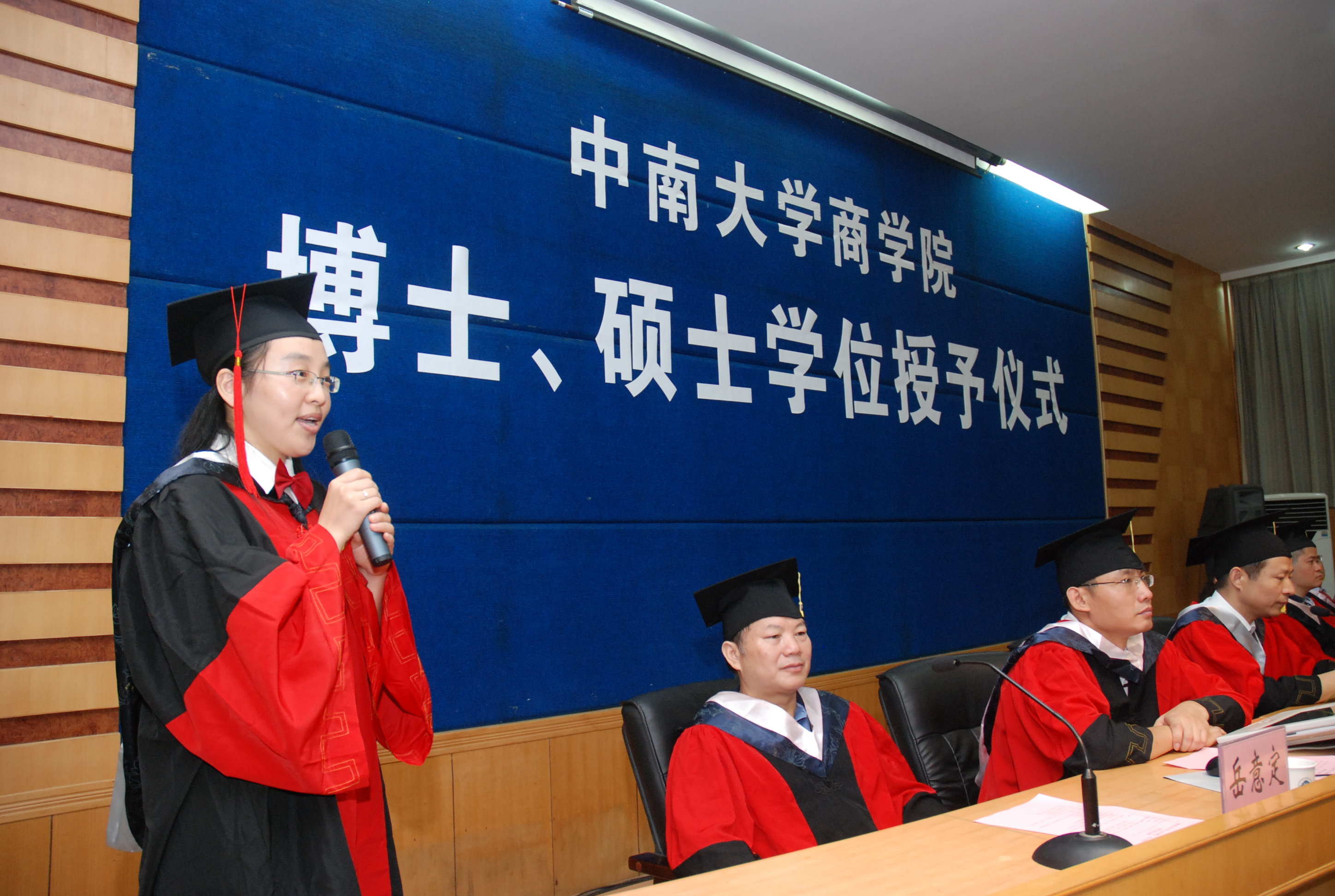 博士生代表,王红霞博士在毕业感言中动情的说:“每一个中南人都是终结困难的“终难人”。今天,既是毕业礼,更是誓师会。就让这感恩的情、离别的泪化做一碗壮行的酒,各位敬爱的老师,亲爱的同学们,干杯!“