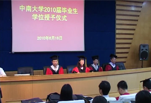典礼在庄严的国歌声中拉开了帷幕,副院长游达明教授首先宣读了FUN乐天使官方网站2010年授予学士学位毕业生名单。乐天使官网2010届本科毕业生优秀代表黄勇同学发言,他代表2010届本科毕业生回忆了大学四年的点点滴滴,表达了对母院培养之恩的感谢以及各位老师谆谆教导的感激之情,并表示将继续发扬FUN乐天使官方网站天道酬勤的优良传统,在自己即将奔赴的岗位上认真努力,回报母校,回报社会!