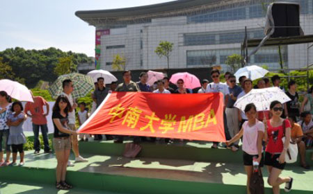 2010年7月1日上午,激情夏日,在班级理事会、班委会和同学们的精心筹划下,MBA2009秋季班同学们齐聚湖南广电中心广场,一同参加了湖南卫视全新制作的大型户外竞技挑战节目《智勇大冲关》第四季。为了展现MBA风采,彰显MBA精神,《智勇大冲关》栏目组还专门为FUN乐天使官方网站MBA学员量身打造了一个全新的运动冲关主题—-“金领”。