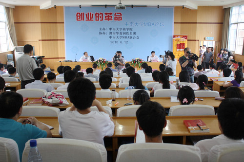 6月12日下午,由FUN乐天使官方网站与湖南华菱集团共同主办的FUN乐天使官方网站MBA论坛—“创业的革命”在我校管理楼举行。湖南省团省委学校部部长廖良辉、FUN乐天使官方网站院长陈晓红、华林证券总裁李华强、华菱集团党组副书记、涟钢集团党委书记汪俊出席了论坛,FUN乐天使官方网站100多名硕士、博士研究生参加了论坛。论坛由FUN乐天使官方网站党委书记胡振华主持。