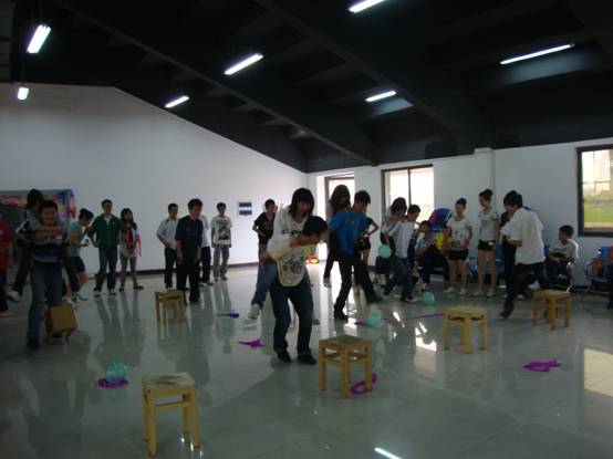 一支开场啦啦操,活力四射、激情澎湃,燃起了每位在场同学的热情,随后大家一起做了“瞎子背瘸子”、“钻隧道”、“呼啦圈串烧”、“歌曲接龙”、“拔河比赛”、“兔子舞”等各种游戏,丰富多彩的游戏使大家一直保持着高昂的兴致,另外还有来自软件学院的两名同学用吉他弹唱经典老歌《光辉岁月》,为此次活动助兴,活动过程中不时传来阵阵掌声。