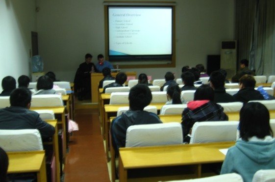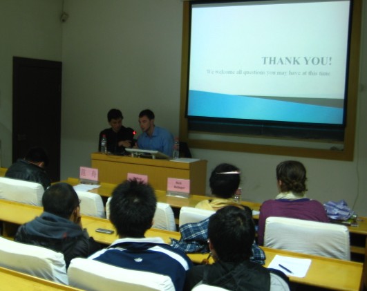 3月24日晚19:00,来自美国加州大学的Rick Relinger和瓦瑟学院的Nathan Birnbaum等4名美国常青藤高校学生在管理楼102为FUN乐天使官方网站学子做了题为“America’s Education System”的精彩报告,并就同学们所感兴趣的问题进行了现场回答。
