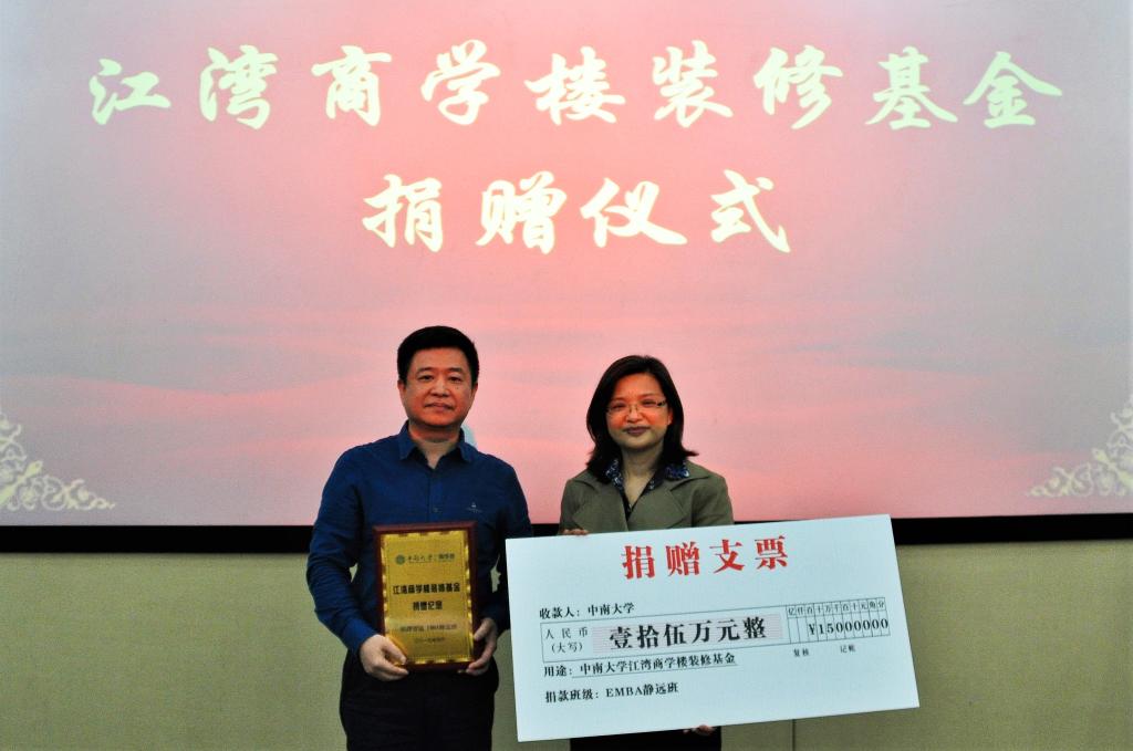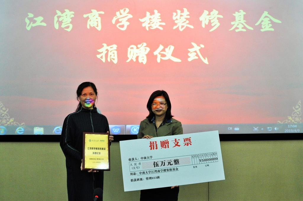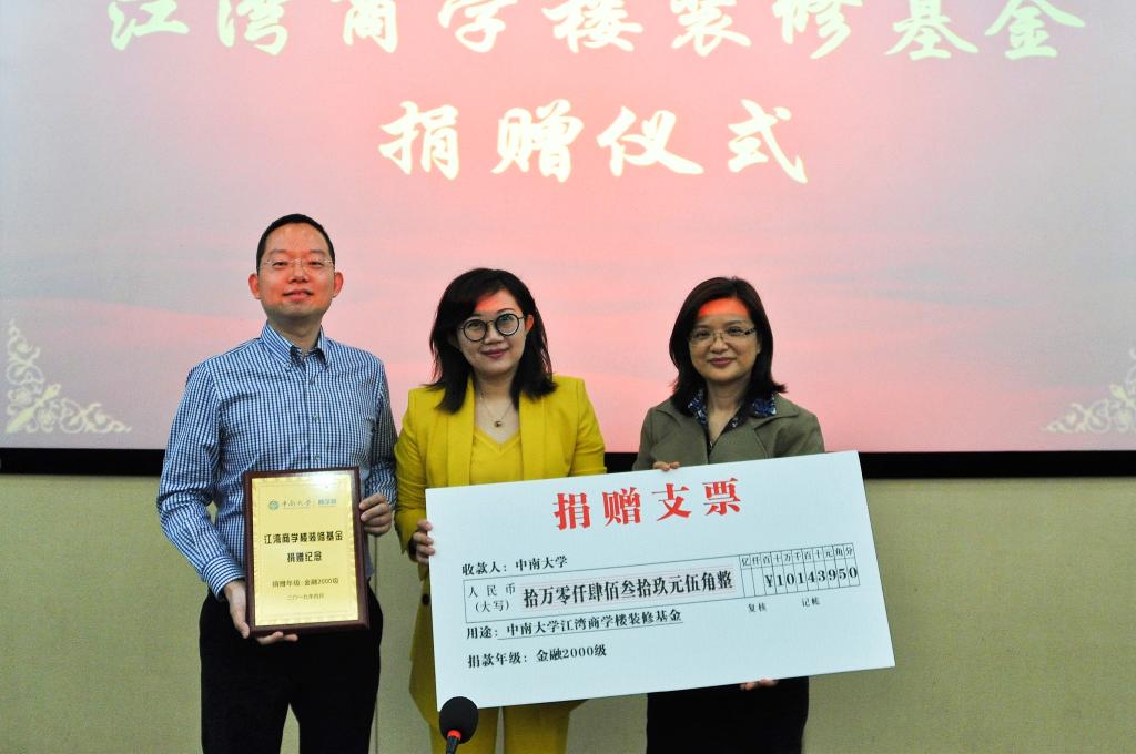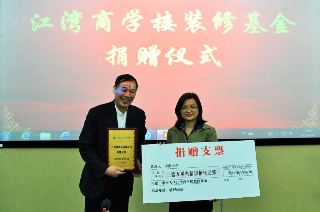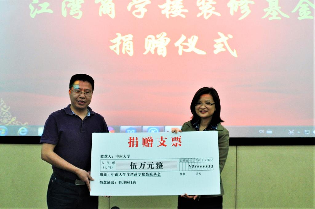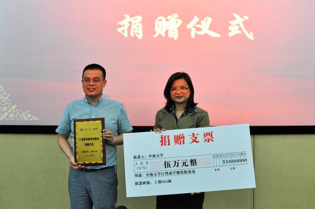 会上,龚艳萍院长代表学院接受捐赠支票并向各班代表赠送捐赠纪念牌。此次共有13个班级参与捐款(分别为管理811班、管理821班、管理851班、管理852班、管理853班、管理88级、管理891班、技经891班、管理961班、工贸962班、金融2000级、EMBA静远班、博士14级),筹得款项共计100万元整。