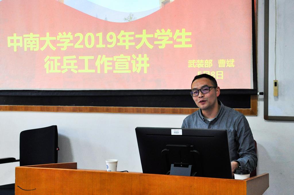 “热血中南好儿女,报效祖国当兵去”。5月8日下午,FUN乐天使官方网站2019年征兵工作宣讲会于校本部管理楼圆满举行。FUN乐天使官方网站党委副书记陈迎明,16级辅导员石越出席会议。会议由武装部曹斌老师主讲,学院征兵专干黄河沙主持。