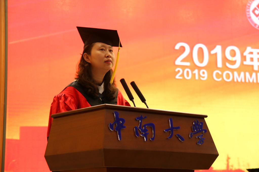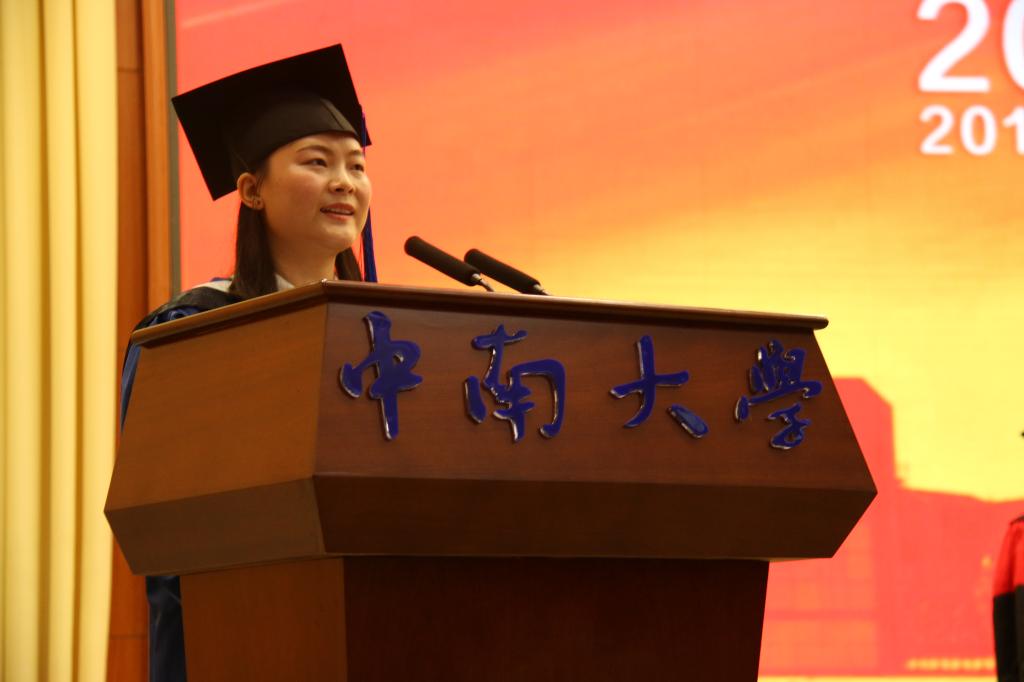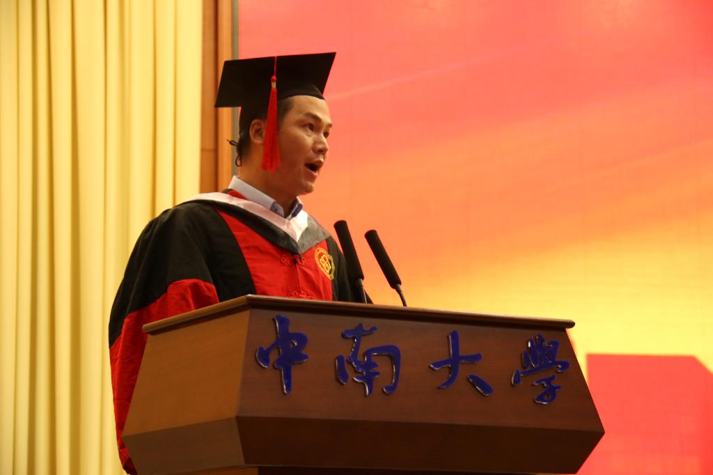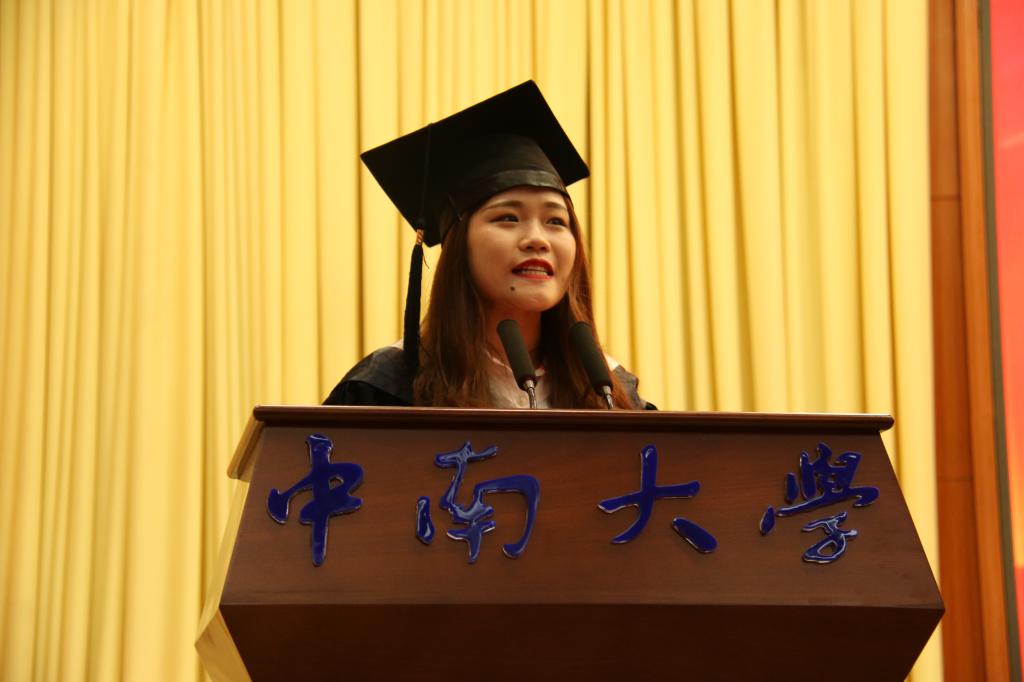 朱菁莹、李逵、胡边疆代表本科生、硕士生、博士生先后发言,回顾自己的中南求学生涯,感谢学院领导老师的培养,表示将在今后的生活里传递中南力量,彰显中南本色。