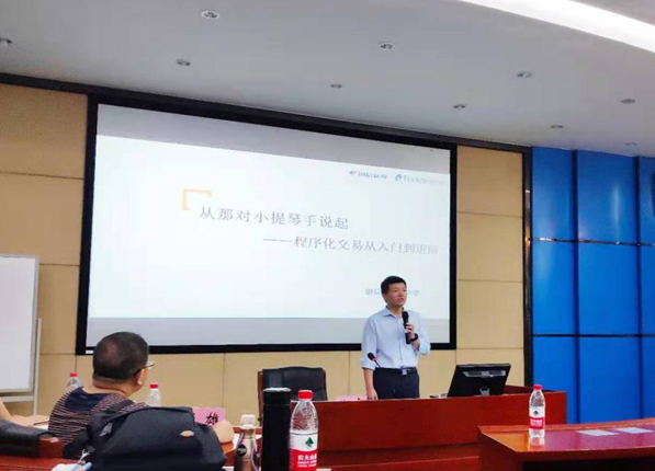 2019年7月3日上午,应金融系量化金融实验室邀请,国信证券总部技术交易团队投研主管徐睿博士等一行三人来乐天使官网进行量化投资仿真实验教学交流,并在管阶一作了题为“从那对小提琴手说起——程序化交易从入门到进阶”的专题讲座。本次讲座由金融系王雄副教授主持,危平副院长、邓超教授、陈建中副教授、金发奇副教授、肖霆副教授、田美玉副教授、黎璞博士等相关教学领域的教师以及18级金融专硕、金融17级本科生等100余名师生参加了讲座。