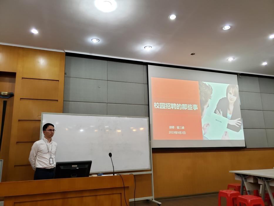 活动伊始,石越老师致开场词,她对融创中国海南区域公司领导的到来表示了欢迎和感谢;其次,她教导同学们:找工作要做有心人,要认真学习相关求职知识,为即将到来的秋招做好准备。