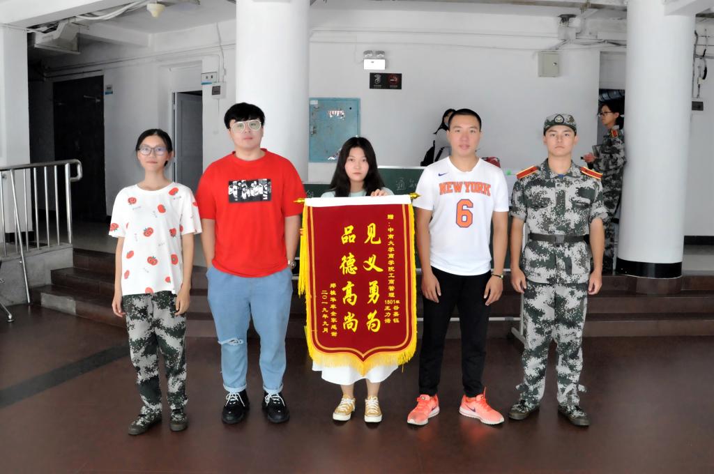 王同学:十分意外,甚至还有点被吓到。当时我在上课,阿姨通过微信问我的地址,之后就拿着锦旗来到了班级门口,一直对我们表示感谢。