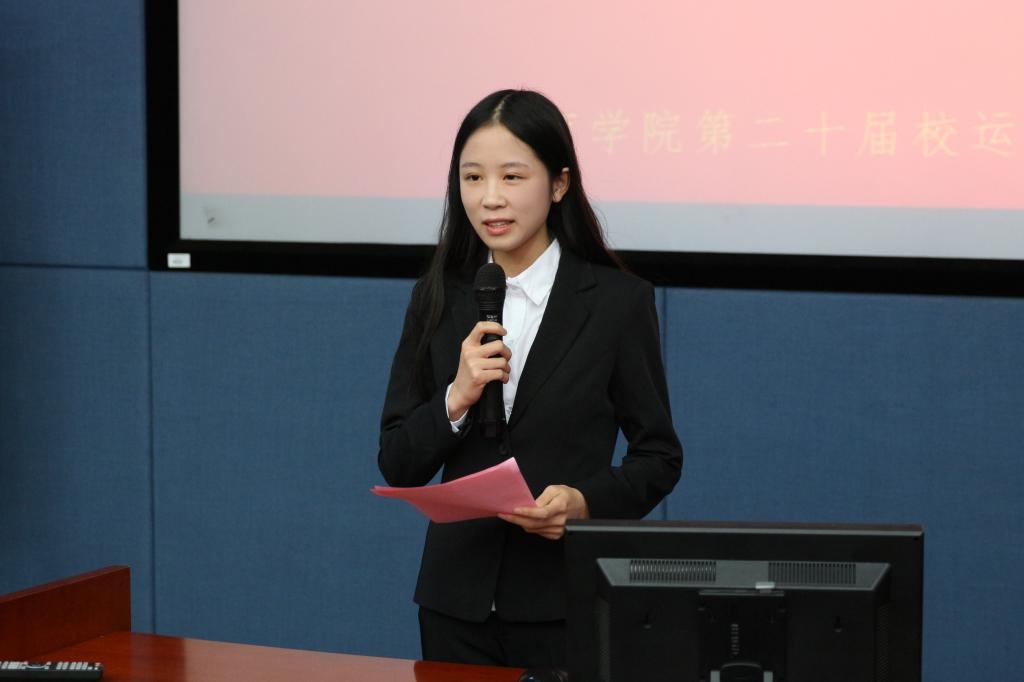 接着,由优秀运动员代表沙涵同学发言。回望过去,是坚持锻炼带给她了现在的成绩,是跑步磨炼了她的毅力;放眼未来,她希望同学们都积极参与体育竞技,将竞技精神运用到生活的每一个地方。